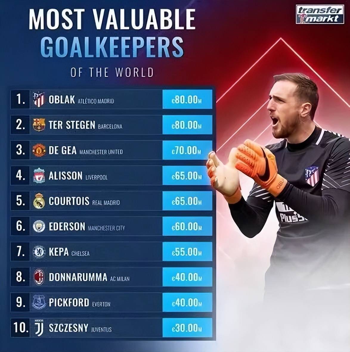 而门将也只能在后场默默奉献。那么,放眼当今足坛,堪称顶尖门将的人都有谁?让我们细细道来。
